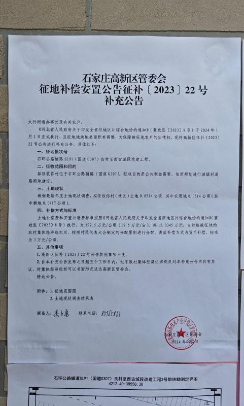 石家庄高新区征地补偿安置公告征补(22-24)补充公告