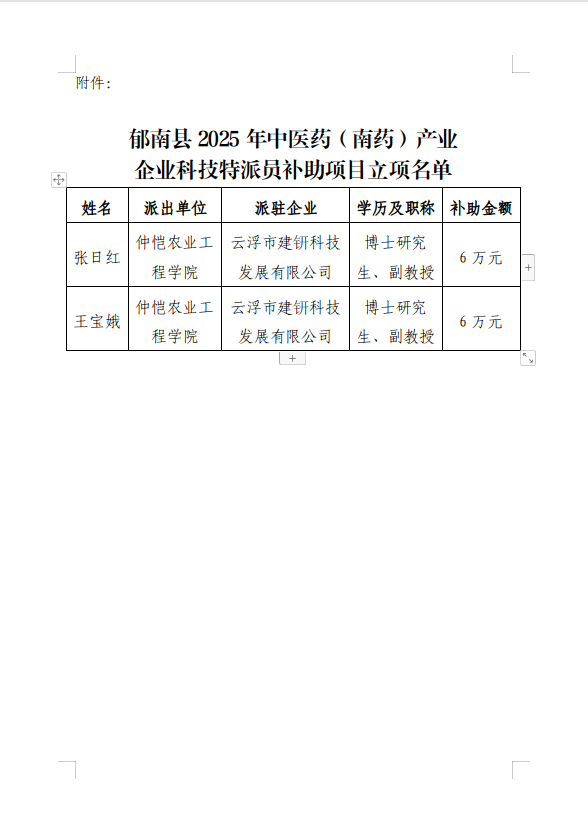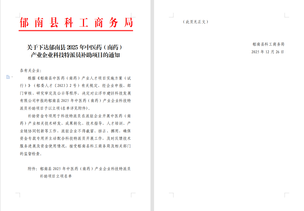 关于下达郁南县2025年中医药(南药)产业企业科技特派员补助项目的通知